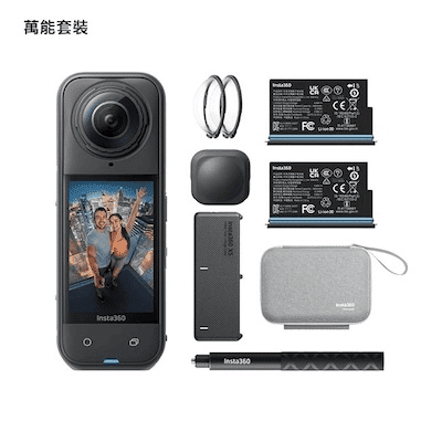 市價:$22990 特色: Insta360 X5、備用電池x 1、多功能充電收納盒、114cm 隱形自拍桿、標準鏡頭保護鏡、鏡頭保護套、收納包