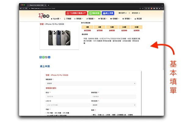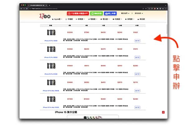確認欲選購的商品後,點選「線上申請」